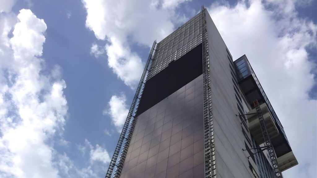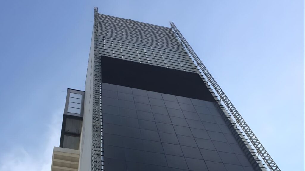 Il LED Wall è progettato per garantire prestazioni elevate, affidabilità e continuità operativa. La tecnologia LED SMD outdoor assicura colori uniformi, ampio angolo di visione e resistenza agli agenti atmosferici. La struttura modulare del LED Wall permette un’integrazione stabile e sicura sulla facciata della torre. Le dimensioni imponenti, ben 10 metri di larghezza e 20 metri di altezza, consentono la diffusione di contenuti di grande impatto, ideali per campagne premium.