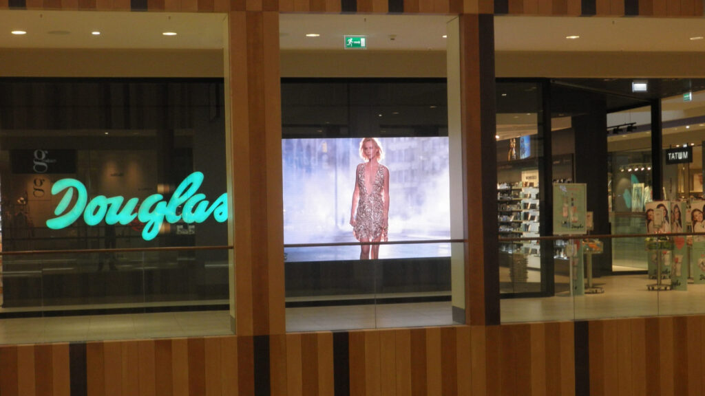 Macropix si è occupata della progettazione, montaggio e configurazione di uno schermo LED passo 3.9 mm che potesse essere utilizzato come potente strumento di marketing, in modo da riuscire a veicolare messaggi pubblicitari a qualsiasi ora del giorno e programmando i vari palinsesti in base alle specifiche esigenze del brand Douglas. La dimensione imponente del display pubblicitario, insieme al notevole contrasto e alla luminosità elevata delle immagini, ha portato innegabili vantaggi in termini di visibilità e ha migliorato considerevolmente l’efficacia delle campagne marketing del brand.