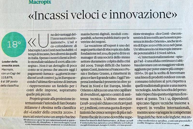 “Macropix, 18esima azienda in Italia per crescita nell’ultimo triennio…”