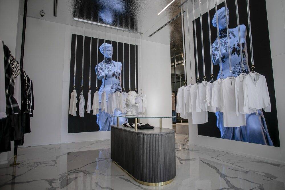 Il nuovo lay out si caratterizza in uno stile fresco, tecnologico e moderno, con elementi di arredo prodotti in esclusiva e in serie limitata per il brand. I materiali classici convivono con elementi contemporanei e creativi come le installazioni luminose dei grandi led wall, a marchio MacroPiX che contribuiscono allo storytelling del marchio.