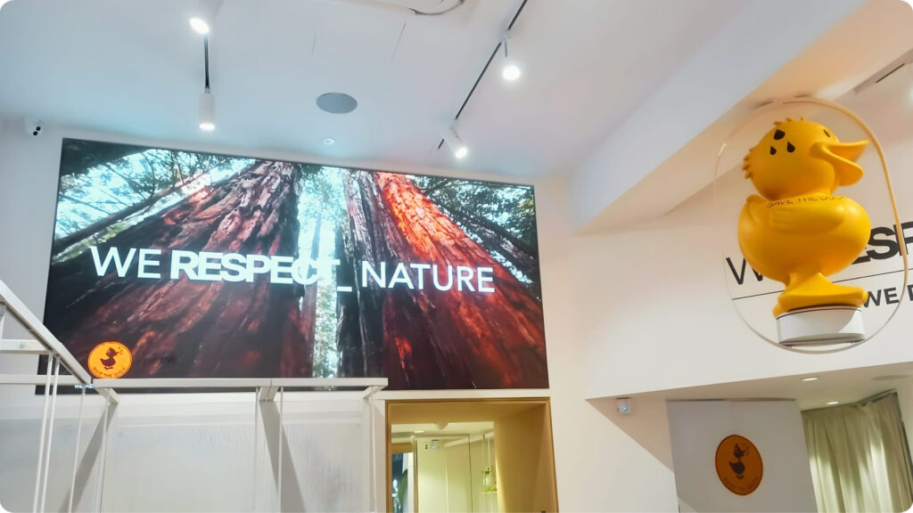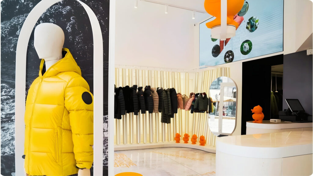 Nel cuore pulsante di Milano, dove via Dante incrocia la storica piazza Cordusio, il retail incontra l’innovazione visiva. Macropix ha realizzato per Save The Duck un’installazione che ridefinisce il concetto stesso di comunicazione in-store, trasformando il punto vendita in un palcoscenico dove il brand racconta la propria identità attraverso la potenza delle immagini. Il grande display LED a parete da 300×150 cm rappresenta il cuore visivo del negozio, un elemento architettonico che dialoga con lo spazio minimale e contemporaneo di Save The Duck.