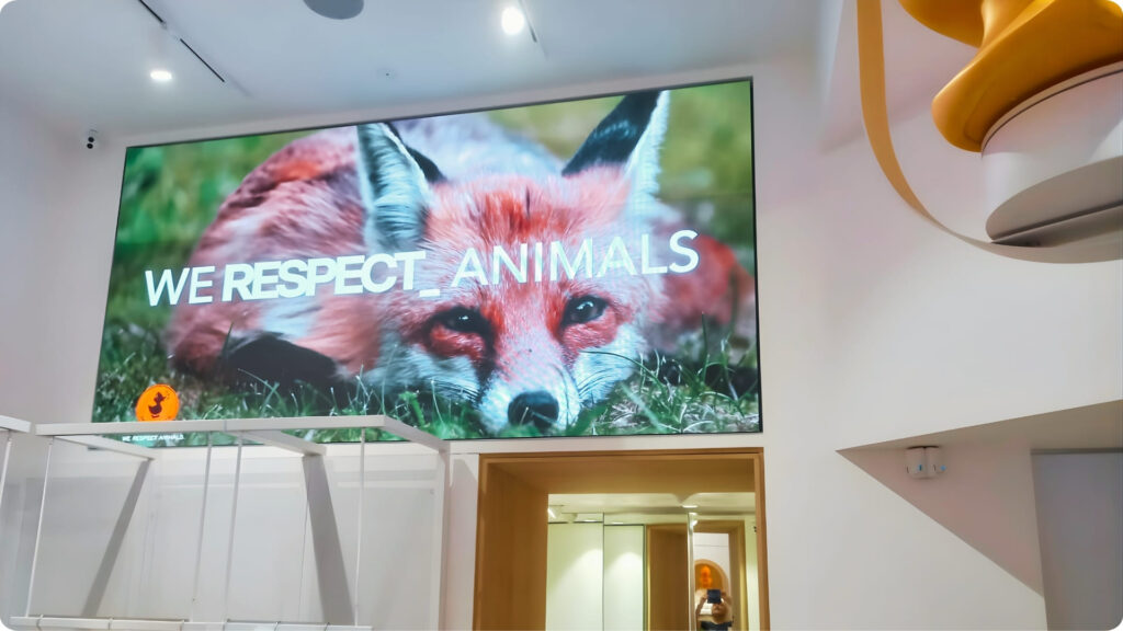 Il progetto realizzato per “Save The Duck” a Milano, in via Dante 3, rappresenta un esempio di come la tecnologia possa integrarsi perfettamente nell’ambiente retail, valorizzando lo spazio senza sovrastarlo. La scelta della serie Subtilis-J con pixel pitch da 2.5 mm garantisce immagini nitide e dettagliate, perfette per esaltare le texture dei capi, la qualità dei materiali e l’identità visiva del marchio. L’installazione a parete crea una presenza scenografica che accompagna l’intera esperienza d’acquisto: dal primo sguardo attraverso la vetrina fino all’esplorazione delle collezioni all’interno dello store. La superficie ampia permette di alternare contenuti emozionali e informativi, creando un ritmo comunicativo che mantiene viva l’attenzione senza risultare invasiva. Di seguito le specifiche tecniche del progetto: